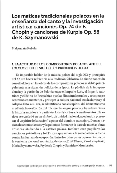 Los matices tradicionales polacos en la enseñanza del canto y la investigación artística: canciones Op. 74 de F. Chopin y canciones de Kurpie Op. 58 de K. Szymanowski
